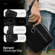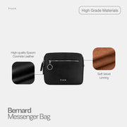 A diminutive version of the classic messenger bag, the Bernard Messenger is made from a combination of Epsom and Mastrotto leather. The zipped main compartment and zipped front pocket keep essentials secure and easy to access while the adjustable strap ensures comfortable shoulder wear or hand wear.