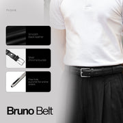 Fashioned from smooth calf leather in timeless black, the belt’s elegant minimalist strap complements both business and formal ensembles.