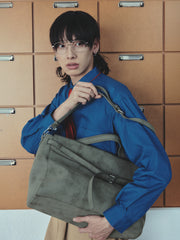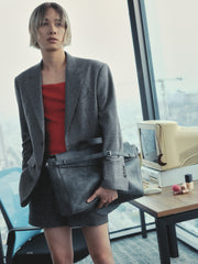 Defined by its belted silhouette, holding form with effortless poise. Lined in soft suede to house up to a 16” laptop, purpose meets tactile luxury. Finished with a detachable handle for a seamless transition.
