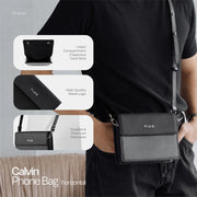 Featuring a smart design with compact dimensions, the Calvin Phone Bag is the perfect choice for everyday carry. Keys, bank cards, phones, everything can be snugly and securely placed in this petite crossbody bag.