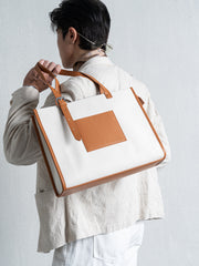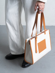 Brown&White: Synthetic leather combined with Canvas, fabric lining