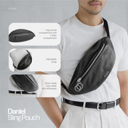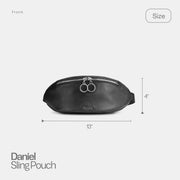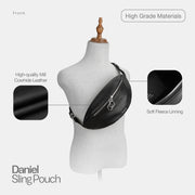 Crafted from Embossed leather, the Daniel Sling Pouch offers the ideal mix of casual chic and modern functionality. With a body-friendly shape and adjustable belt, it can be worn around the waist, over the shoulder or slung stylishly across the chest. Zipped pockets, front and back, provide easy access to phone, cards and keys.