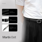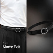 A staple addition to your wardrobe, this black belt features silver Oval ring fastening. This belt is complete with a signature embossed Frank logo