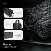 A refined essential for those on the move. Crafted from premium Taiga-embossed cowhide leather and lined with soft velvet, the Mason Travel Pouch brings both structure and softness into one minimalist form. Its clean, boxy silhouette offers optimal space for grooming tools and everyday essentials.