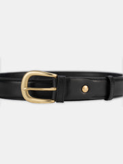 A slim leather belt with our signature brass buckle will elevate your formal ensembles. Made in smooth leather.
