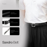 Made from premium leather, this black belt features a minimalist design with a shining-finish zinc alloy buckle.