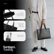 Crafted from smooth and luxurious cowhide leather, with an optimized form that perfectly accommodates a 14-inch laptop. Reintroduced in the latest version, the Santiago L Tote Bag promises to be the bag that satisfies you with comfort and elegance, adding a touch of sophistication to all your outfits.
